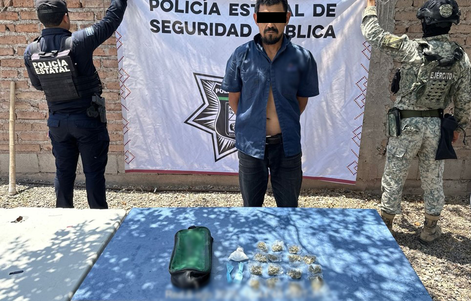 En Sonora, elementos del Ejército Mexicano, Semar y Policía Estatal detuvieron a un hombre, le aseguraron 450 envoltorios y 99 cigarrillos con marihuana, 270 envoltorios con metanfetamina y un vehículo