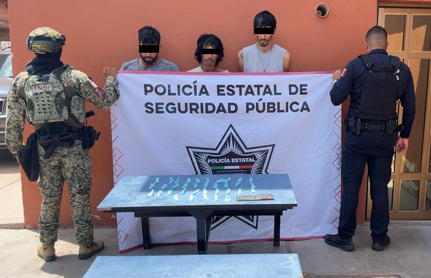 -En Bácum, elementos de Semar, Ejército Mexicano y Policía Estatal detuvieron a cinco personas, aseguraron 205 envoltorios con marihuana, 223 envoltorios con metanfetamina, tres chalecos balísticos y un vehículo.