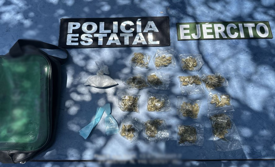 -En Hermosillo, elementos del Ejército Mexicano, Semar y Policía Estatal detuvieron a un sujeto, aseguraron 450 envoltorios y 99 cigarrillos con marihuana, 270 envoltorios con metanfetamina y un vehículo.