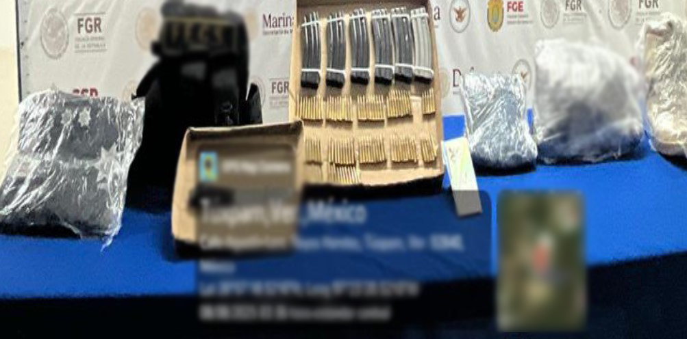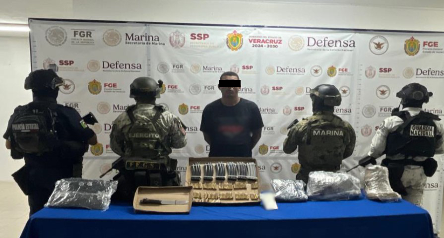 -En Cerro Azul, elementos de Semar, Ejército Mexicano, GN y Policía Estatal detuvieron a una persona de nacionalidad extranjera, le aseguraron 111 cartuchos, seis cargadores, un chaleco táctico, un teléfono celular y diversas prendas tácticas.