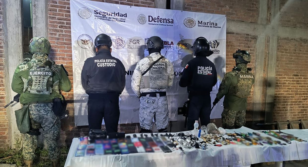 -En Puebla, como parte de la Estrategia Nacional Contra la Extorsión, elementos de GN, Ejército Mexicano, Semar, Policía Estatal y del Sistema Penitenciario realizaron una inspección al Centro de Reinserción Social Puebla, donde aseguraron 125 dosis de drogas, 87 objetos punzocortantes, dos dispositivos de almacenamiento masivo, seis audífonos inalámbricos, cuatro bocinas, cuatro chips, 35 celulares y 16 cargadores para teléfonos.