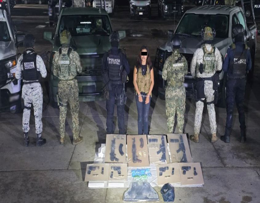 -En Cunduacán, en los ejidos Huacapa y Amestoy, elementos de GN, Ejército Mexicano, Semar y Policía Estatal detuvieron a una mujer, le aseguraron cuatro armas largas, cuatro armas cortas, ocho cargadores, 160 cartuchos, dosis de marihuana y dos chalecos tácticos.