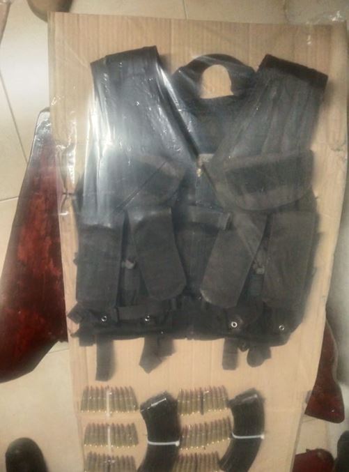 -En Elota, Enel poblado Casa Viejas elementos de Semar aseguraron cuatro armas largas, 2,203 cartuchos útiles, 38 cargadores, siete chalecos tácticos, dos paneles balísticos y nueve placas balísticas.