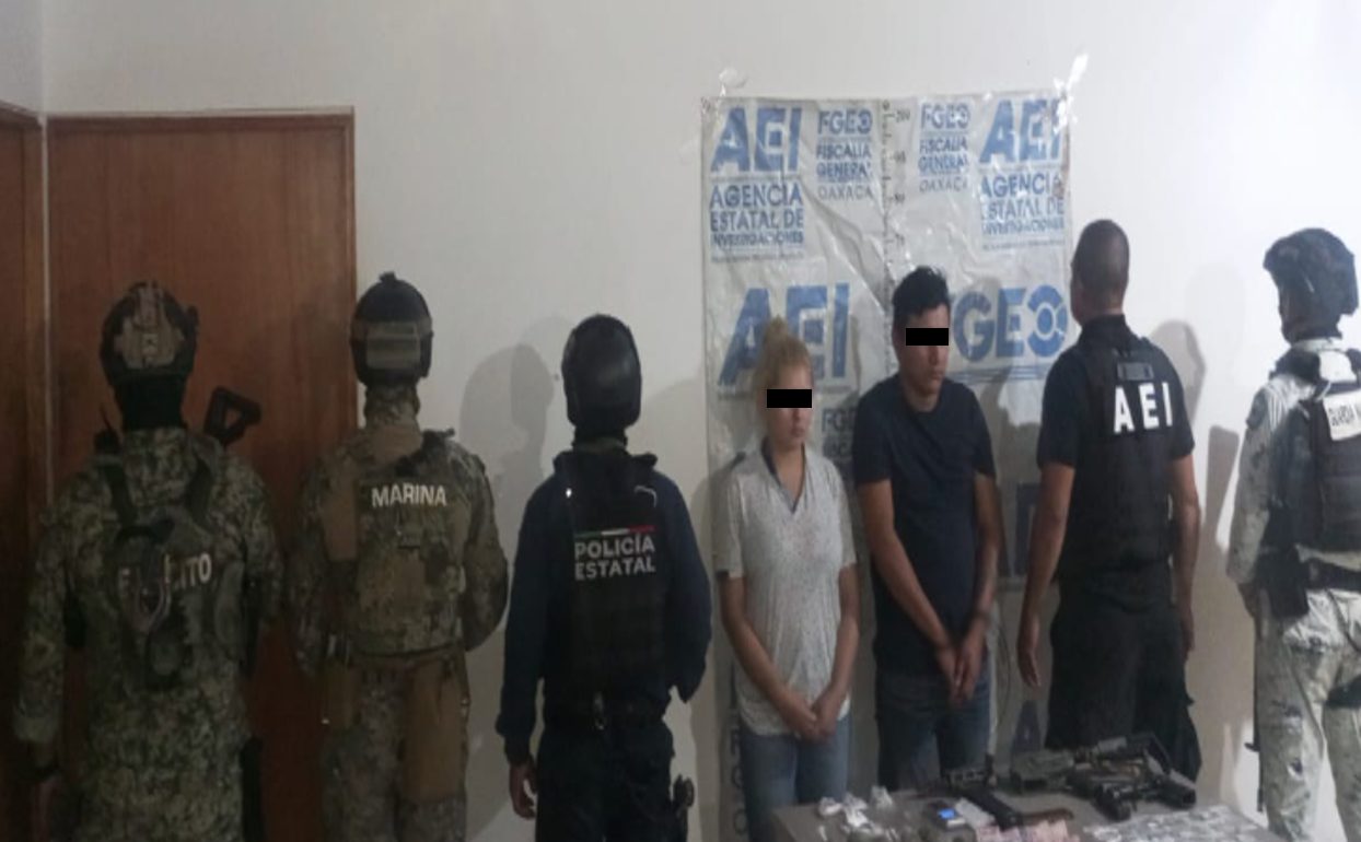 -En Santo Domingo Zanatepec, elementos de Semar, Ejército Mexicano, GN, Fiscalía y Policía Estatal, durante un cateo, detuvieron a dos personas, aseguraron un arma larga, un arma corta, 27 cartuchos, dos cargadores, 12 envoltorios con marihuana, nueve dosis de cocaína, 30 dosis de metanfetamina y dinero en efectivo.