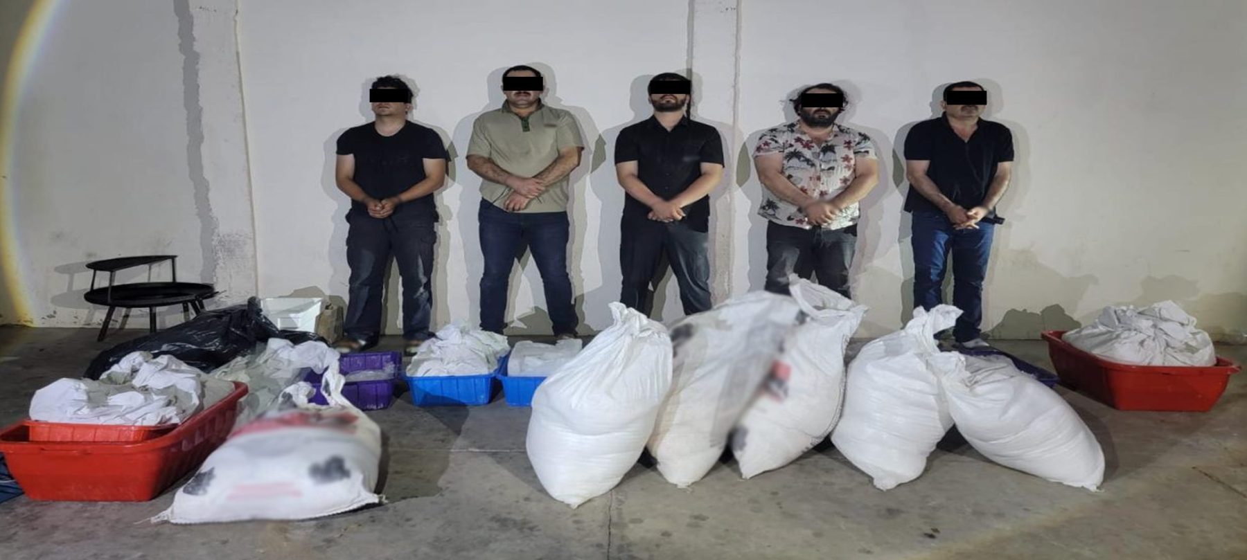 En Badiraguato y Culiacán, Sinaloa, en los poblados Las Palmas, La Puerta, La Rastra, Estancia de los Burgos y La Mora, elementos del Ejército Mexicano localizaron cinco áreas de concentración de material diverso para la elaboración de metanfetamina, aseguraron 6,625 litros y 135 kilos de sustancias químicas, un reactor de síntesis orgánica y un condensador.
