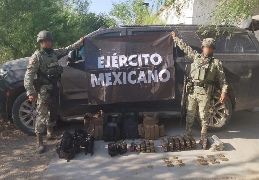 -En Méndez, en el rancho Guadalupe de Cerrito, elementos del Ejército Mexicano localizaron cuatro vehículos, uno de ellos con blindaje artesanal, aseguraron 51 cargadores, 1,205 cartuchos, cuatro chalecos tácticos, seis placas balísticas y dos fornituras.