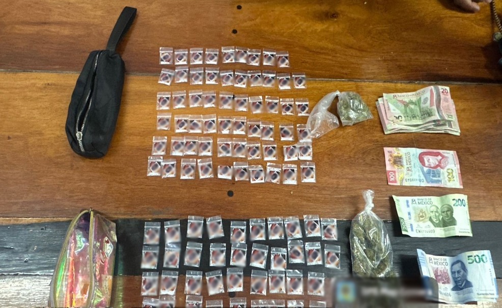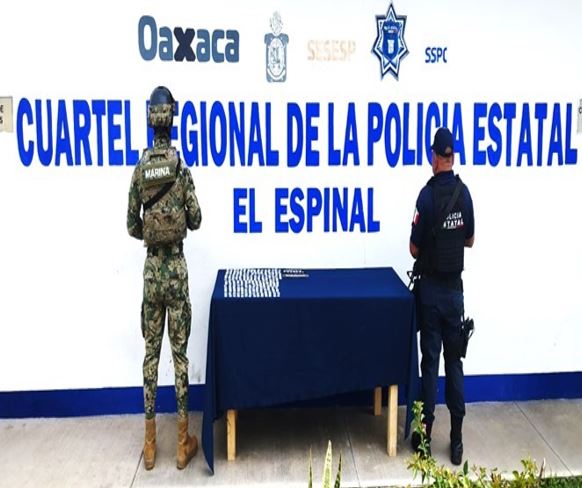 -En Juchitán de Zaragoza, elementos de Semar y Policía Estatal aseguraron una bolsa con 210 bolsitas con metanfetaminas en la vía pública.