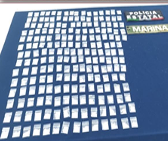 -En Manzanillo, elementos de la Secretaría de Marina (Semar), Ejército Mexicano, GN y Policía Municipal detuvieron a una persona con 119 envoltorios con metanfetamina y dos envoltorios con marihuana.