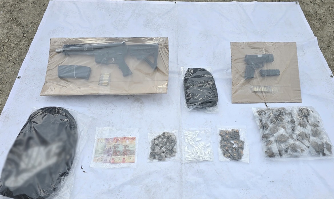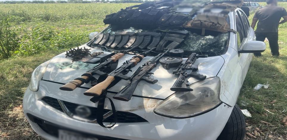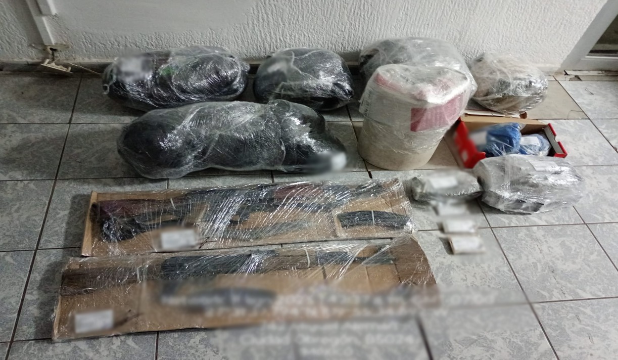 -En Navolato, elementos de Semar detuvieron a cuatro personas, les aseguraron cuatro armas largas, 443 cartuchos útiles, 16 cargadores, cuatro chalecos tácticos, seis placas balísticas, 28 ponchallantas, cuatro dosis de marihuana y un vehículo.