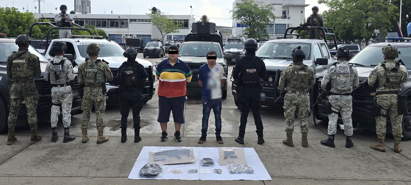 -En Centro, en la colonia Miguel Hidalgo, elementos de GN, Ejército Mexicano, Semar, FGR y SSPC del Estado, al realizar patrullajes de vigilancia, detuvieron a dos personas, aseguraron un arma larga, un arma corta, dos cargadores, 20 cartuchos, 48 dosis de metanfetamina, 42 dosis de cocaína, 60 dosis de mariguana, dinero en efectivo y un vehículo.