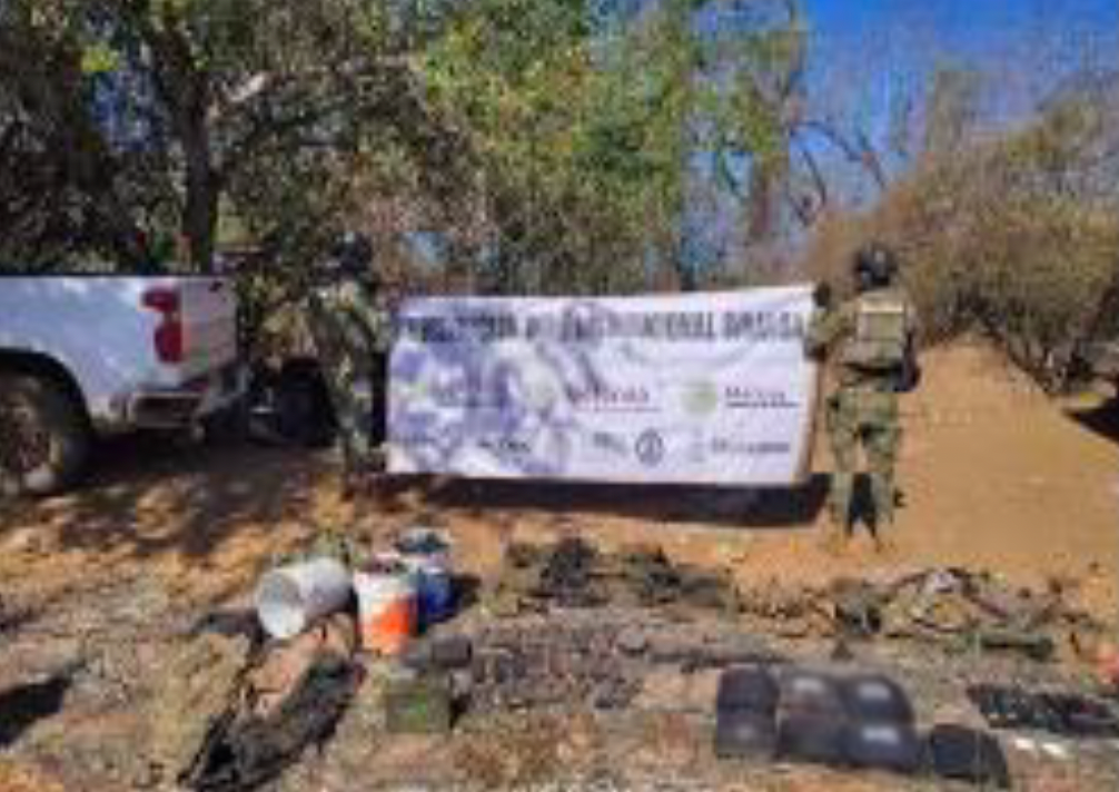 En Cosalá, Sinaloa, elementos del Ejército Mexicano inhabilitaron nueve áreas de concentración de material diverso para la elaboración de metanfetamina, asegurando 7,550 litros de sustancias químicas y dos condensadores.