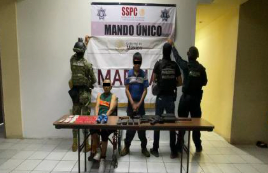 -En San Luis Río Colorado, elementos de Semar detuvieron a dos personas con un arma larga, dos armas cortas, 110 cartuchos útiles, cuatro cargadores, cinco envoltorios de marihuana y 29 dosis de metanfetamina.