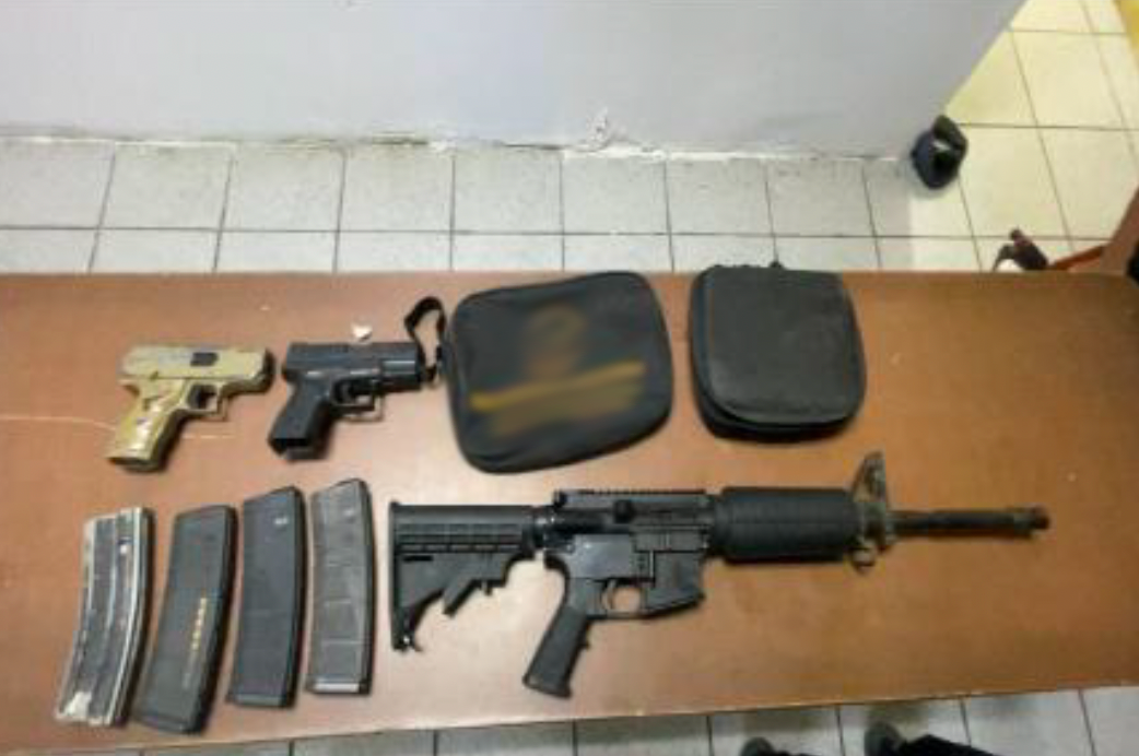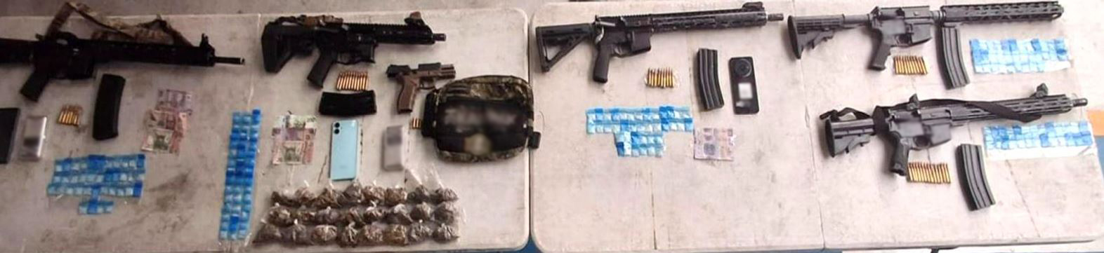 -En Villa Corso, elementos de GN detuvieron a tres personas a bordo de una camioneta y una motocicleta, asegurándoles dos armas largas, dos armas cortas, una granada de fragmentación, 18 cargadores, 603 cartuchos y equipo táctico.
