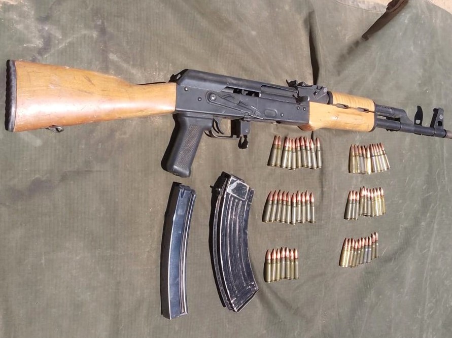 -En Tangamandapio, elementos del Ejército Mexicano aseguraron un arma larga, seis cargadores, 134 cartuchos, una granada, un chaleco táctico y una placa balística.