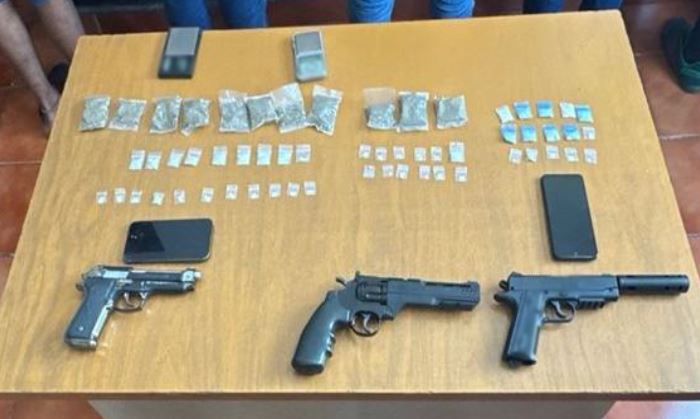 -En Tlaquiltenango y Cuautla, en eventos distintos, elementos de GN, Ejército Mexicano y SSPC detuvieron a seis personas, aseguraron cuatro armas cortas, diversas dosis de drogas y una motocicleta.