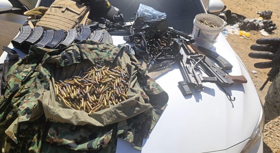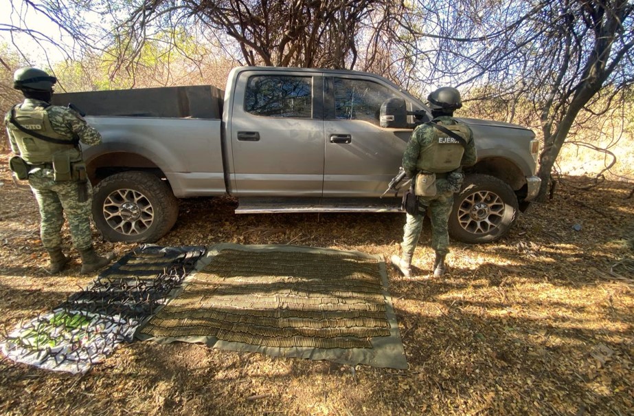 -En Mazatlán, en la comunidad El Zapote, elementos del Ejército Mexicano y GN aseguraron un fusil Barrett, tres armas largas, 67 cargadores, 230 cartuchos, ocho chalecos balísticos, un casco táctico y siete artefactos explosivos improvisados.