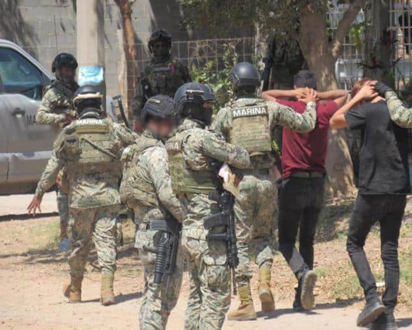 -En Cajeme, en el ejido Granjas Micas, elementos de Semar y la Agencia Ministerial de Investigación Criminal (AMIC), durante el desarrollo de la “Operación Sable”, en la ejecución de orden de cateo a un inmueble detuvieron a cinco personas y aseguraron un arma larga y una motocicleta con reporte de robo en Estados Unidos.