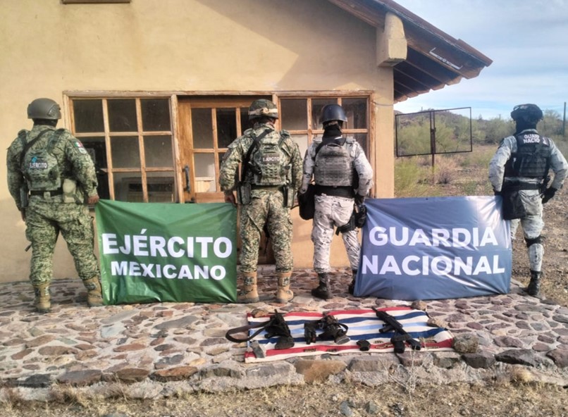 -En Navojoa, elementos del Ejército Mexicano, GN, FGR y FGE catearon un inmueble, aseguraron siete armas largas, cargadores, dos motocicletas y un vehículo.