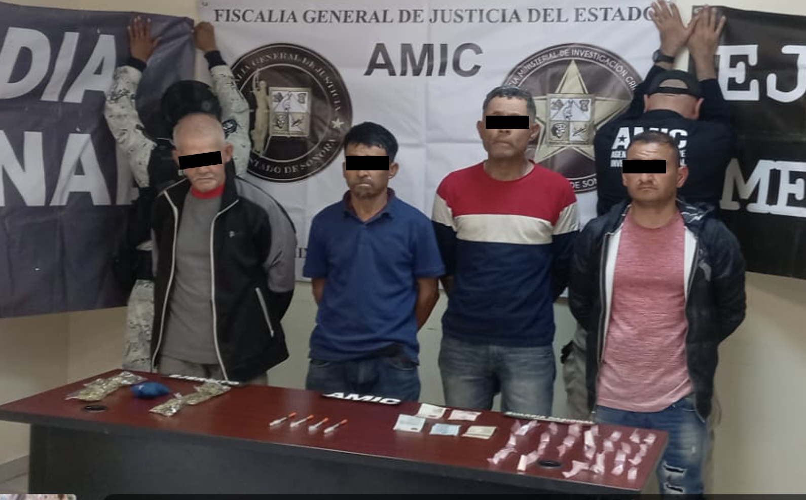 -En San Luis Rio Colorado y Caborca, elementos del Ejército Mexicano, GN y FGE detuvieron a cinco personas y aseguraron diversas dosis de droga, cargadores, 147 cartuchos y dinero en efectivo.