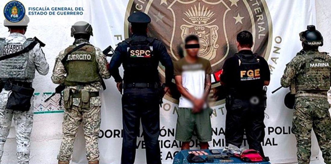 En Guerrero, elementos de la SSPC, Ejercitó Mexicano, GN, Semar y Fiscalía del Estado detuvieron a un sujeto dedicado a la venta de droga y homicidios en la zona, le aseguraron un arma corta y diversas dosis de drogas