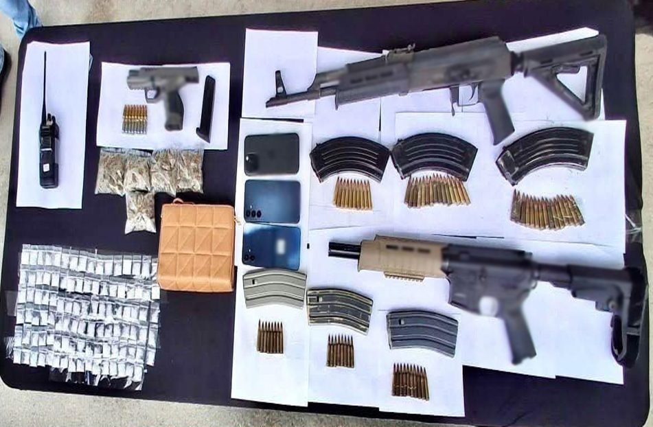 En Nuevo León, elementos del Ejército Mexicano, GN y Policía Estatal detuvieron a tres personas, les aseguraron dos armas largas, un arma corta, seis cargadores, cartuchos, diversas dosis de drogas y un equipo de radiofrecuencia