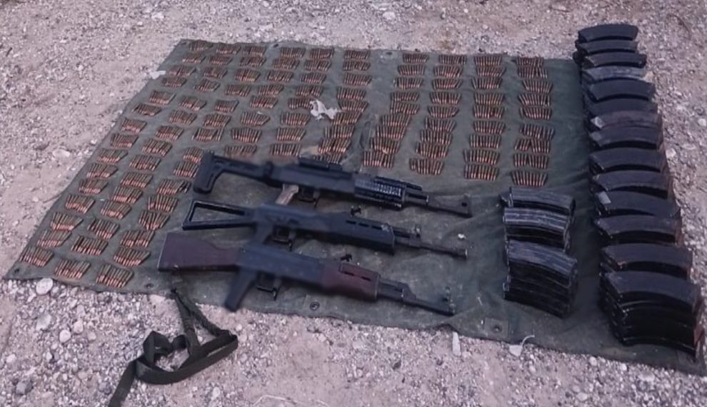 En Sinaloa, en la localidad El Batel, elementos del Ejército Mexicano, al realizar patrullajes de vigilancia, localizaron un campamento clandestino, aseguraron un arma larga, un aditamento lanzagranadas, 49 cargadores y 2,100 cartuchos