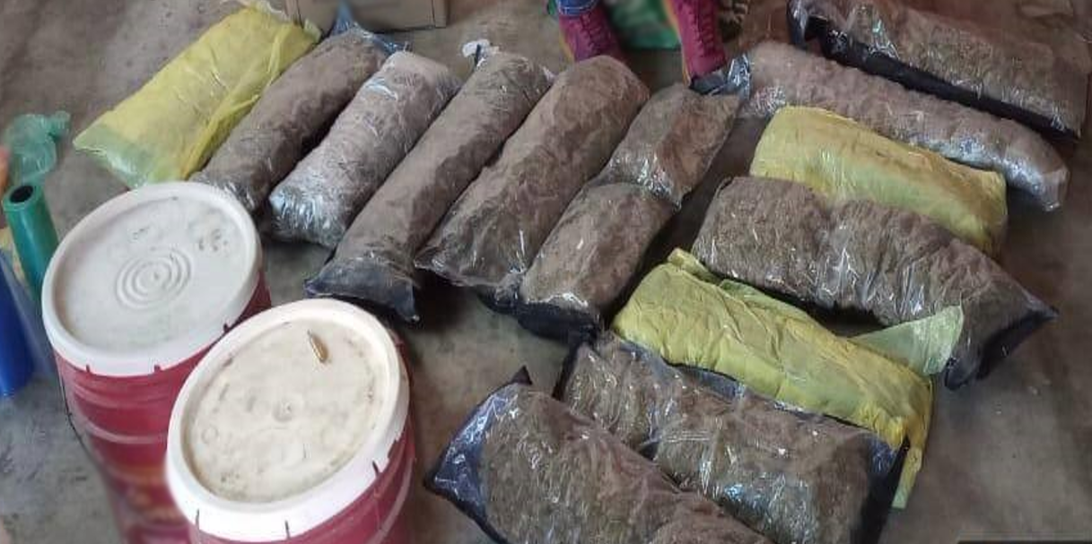 En Chiapas, elementos de la Guardia Nacional, Fiscalía del Estado, Policía Estatal y Policía Municipal, aseguraron 75 kilos de marihuana, 20 litros de acetona, cartuchos, dos vehículos y un inmueble. El costo de la droga asegurada es de 281 mil 283 pesos