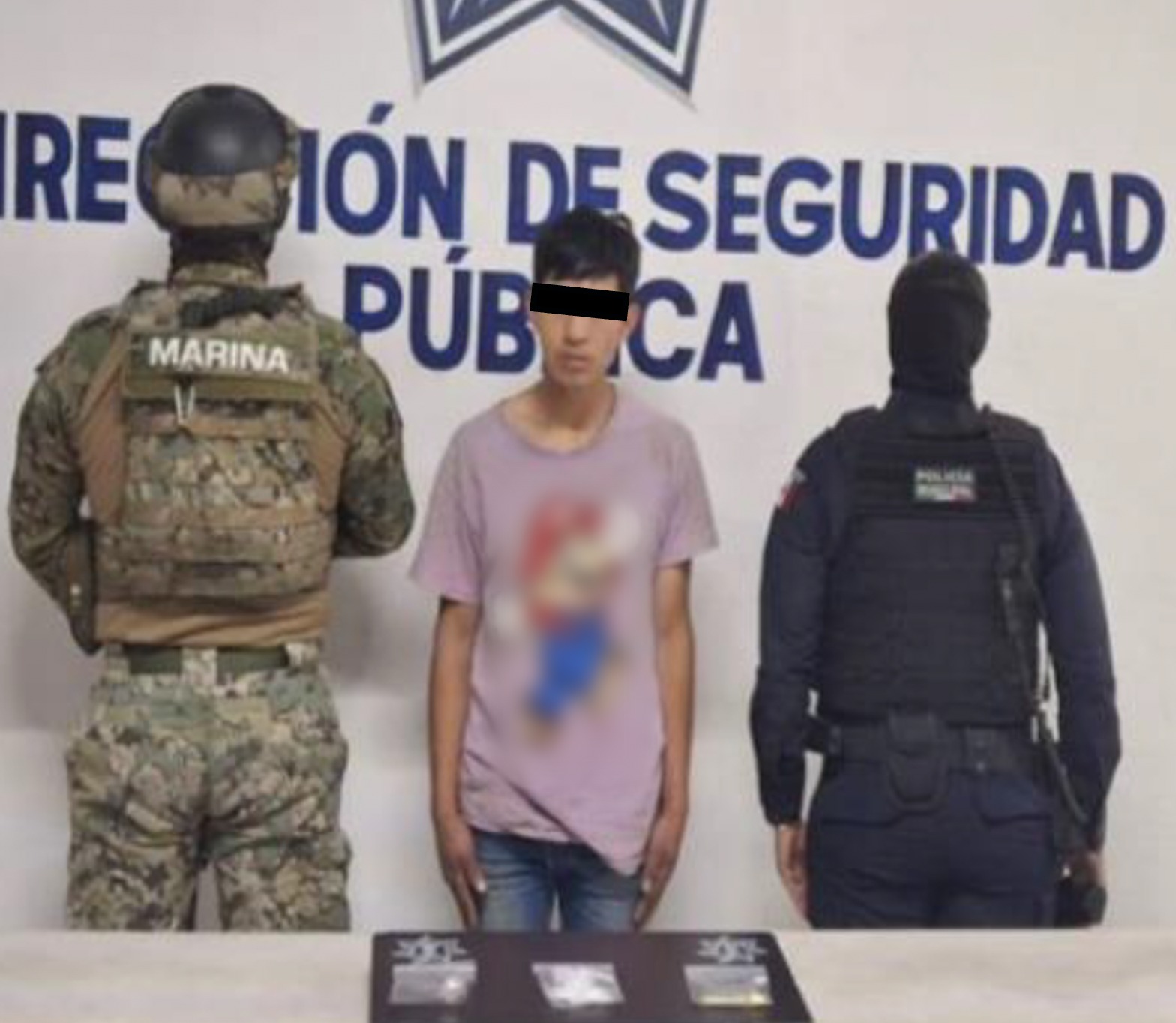 En la colonia Luis Donaldo Colosio y Ciudad Cuauhtémoc, detuvieron a dos personas, a quienes les aseguraron siete dosis de marihuana, seis envoltorios con polvo blanco, 36 bolsas con sustancia solida blanca y dinero en efectivo.