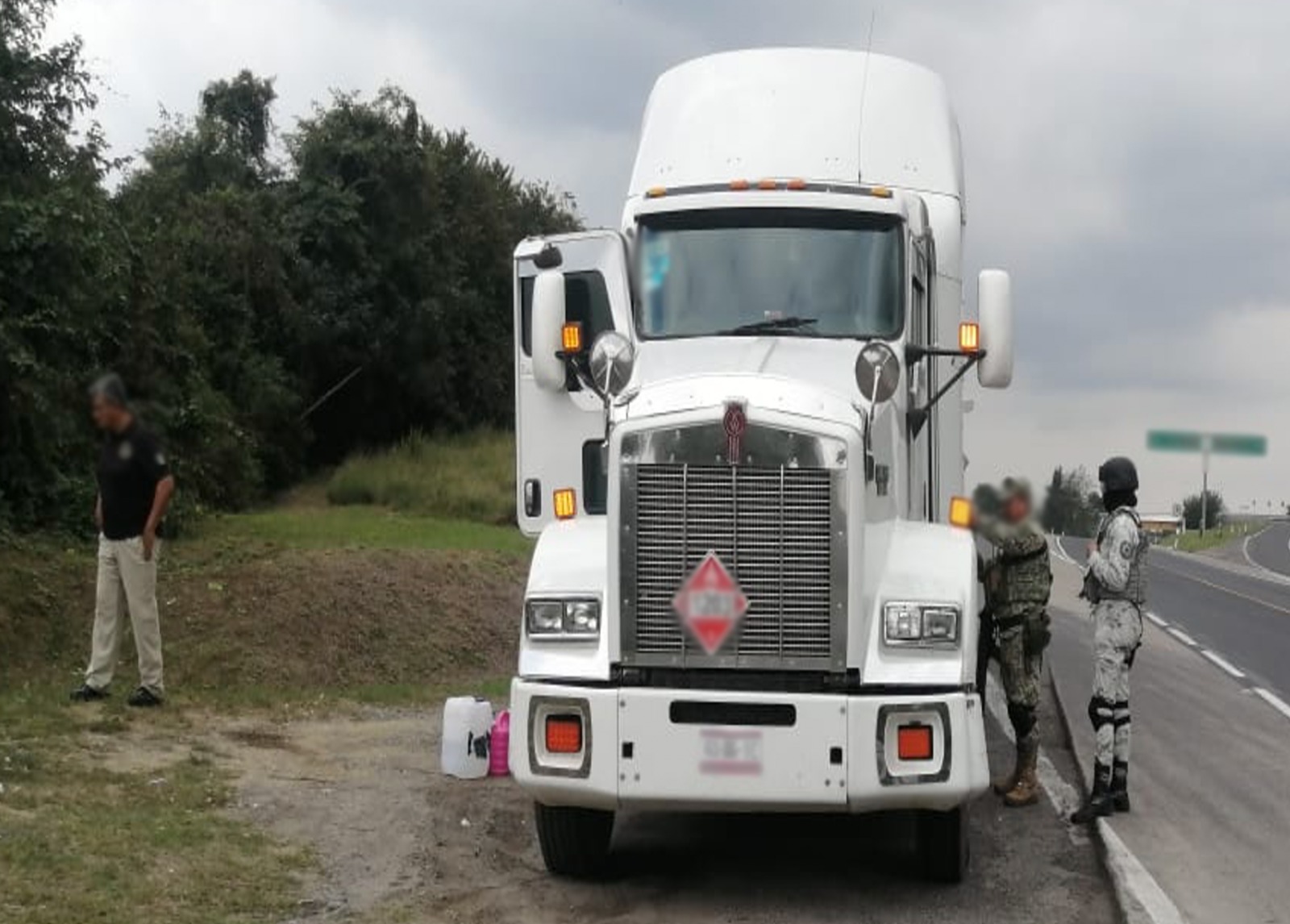 En Veracruz, elementos del Ejército Mexicano, GN y Seguridad Física de PEMEX, al realizar reconocimientos sobre la autopista México-Tuxpan, realizaron la detención de tres personas, aseguraron un tractocamión, un tanque cisterna y recuperaron 46,500 litros de hidrocarburo, gasolina.