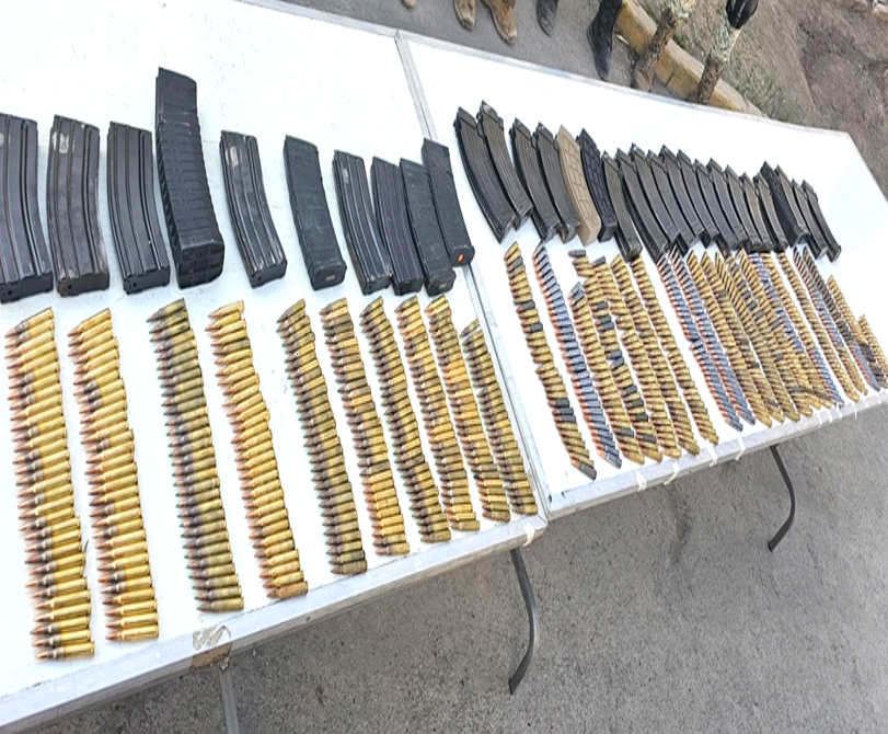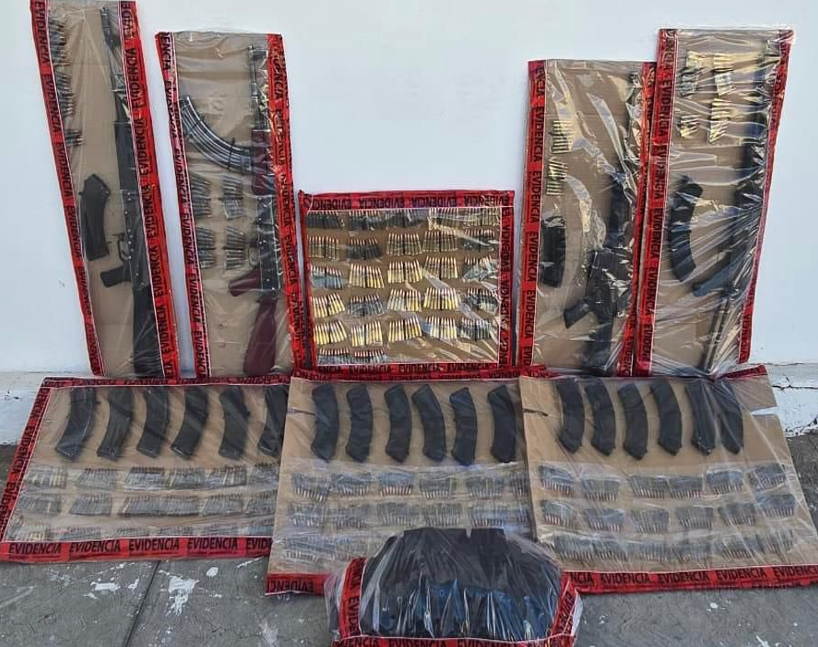 -En Cajeme, elementos del Ejército y GN, al realizar patrullajes de vigilancia, aseguraron dos armas largas, seis cargadores y 138 cartuchos.