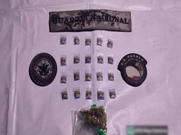 -En Guanajuato, elementos del Ejército Mexicano y GN, al realizar patrullajes de vigilancia, aseguraron 20 dosis de metanfetamina y un dosis de marihuana.