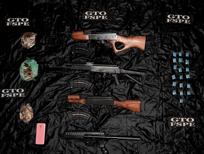 -En Valle de Santiago, elementos del Ejército Mexicano, GN, Secretaría de Seguridad y Protección Ciudadana (SSPC) y Policía Estatal detuvieron a cinco integrantes de una célula delictiva, liberaron a un menor de edad y aseguraron cuatro armas largas.
