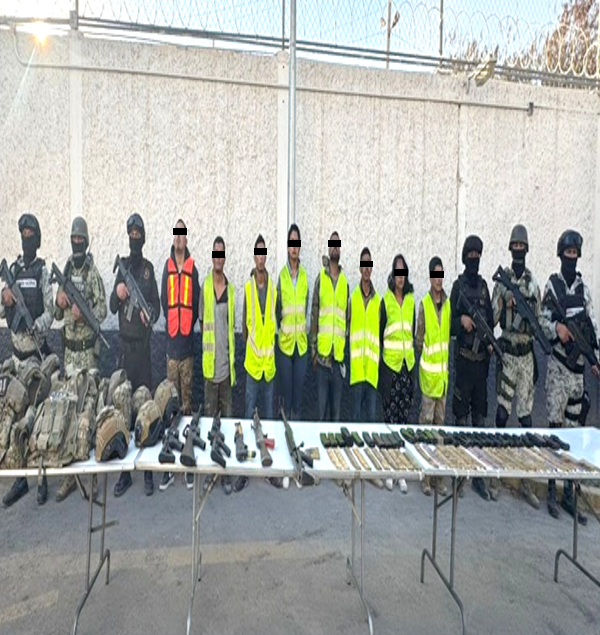 -En Hidalgo, elementos del Ejército Mexicano, GN, FGR y Policía Estatal detuvieron a ocho personas, les aseguraron un fusil barret, cinco armas largas, 1,502 cartuchos, 57 cargadores, equipo táctico y dos vehículos.
