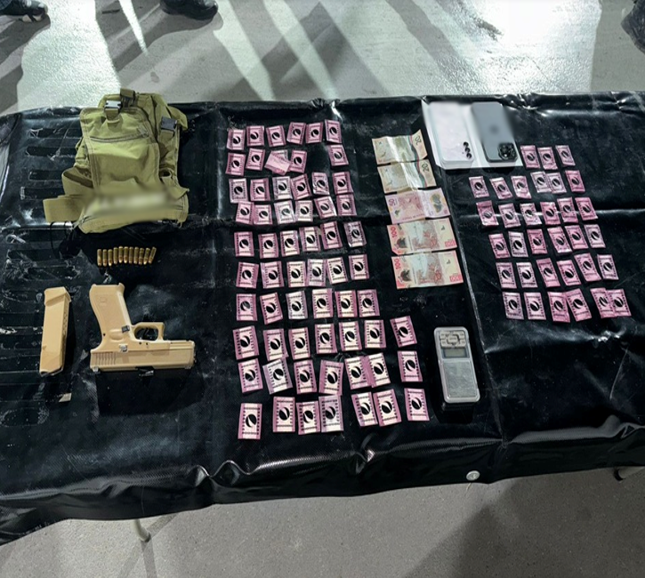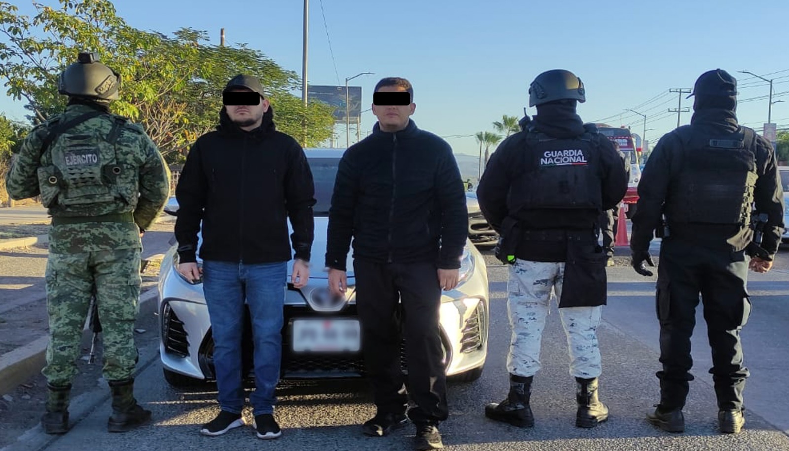 -En Nogales, elementos del Ejército Mexicano y Fiscalía del Estado detuvieron a cuatro personas a bordo de un vehículo con reporte de robo, les aseguraron un arma larga, dos armas cortas, diversas dosis de droga y estrellas ponchallantas.