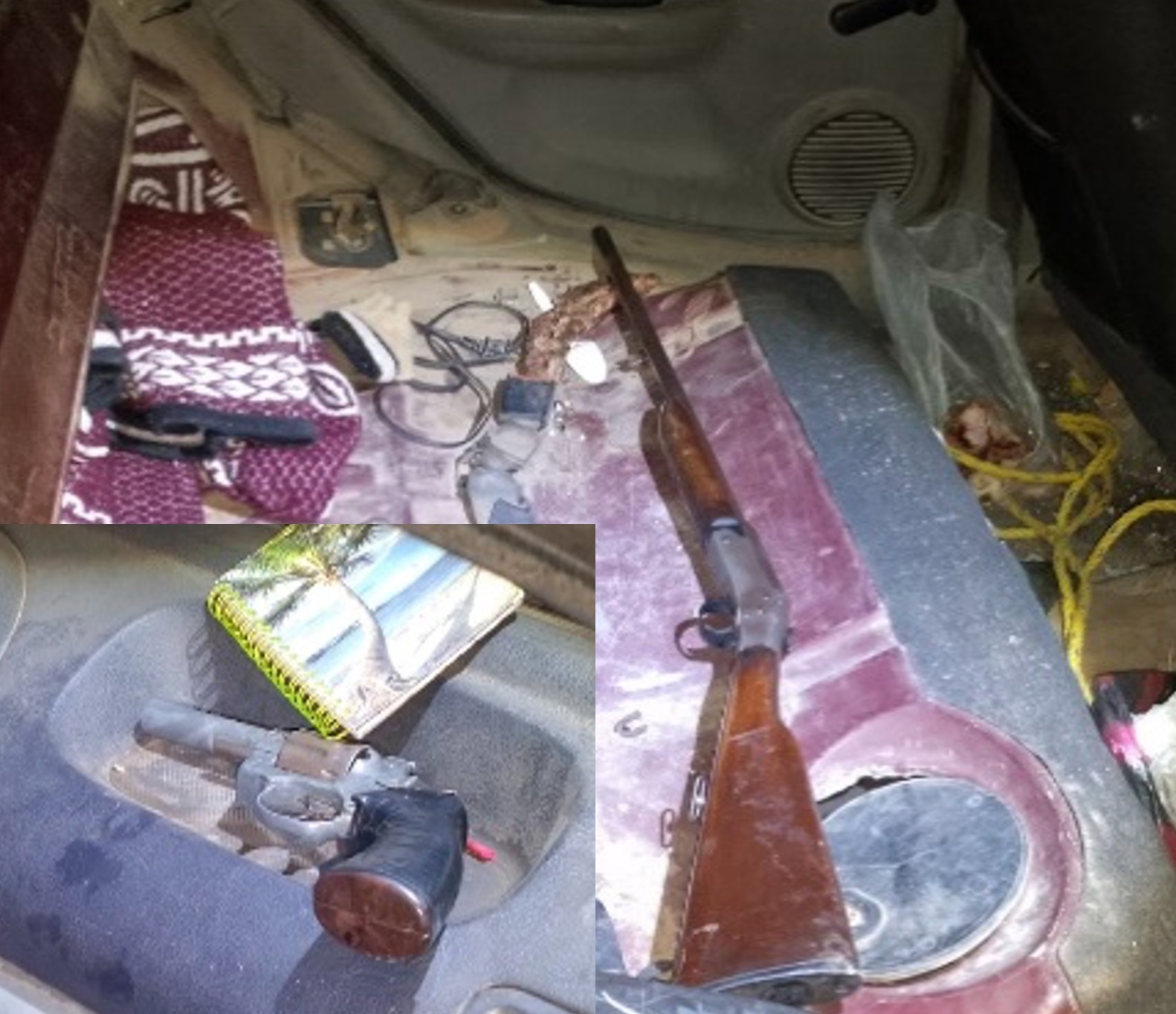 En el poblado de Beristain, aseguraron un arma larga, un arma corta y 20 cartuchos en el interior de un vehículo abandonado.