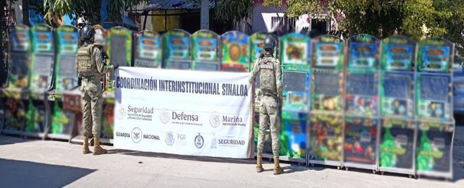 -En Mazatlán, en el desarrollo de la “Operación Sable”, en la colonia Santa Fe, elementos de Semar aseguraron 29 máquinas tragamonedas denominadas habichuelas, ubicadas en la vía pública.