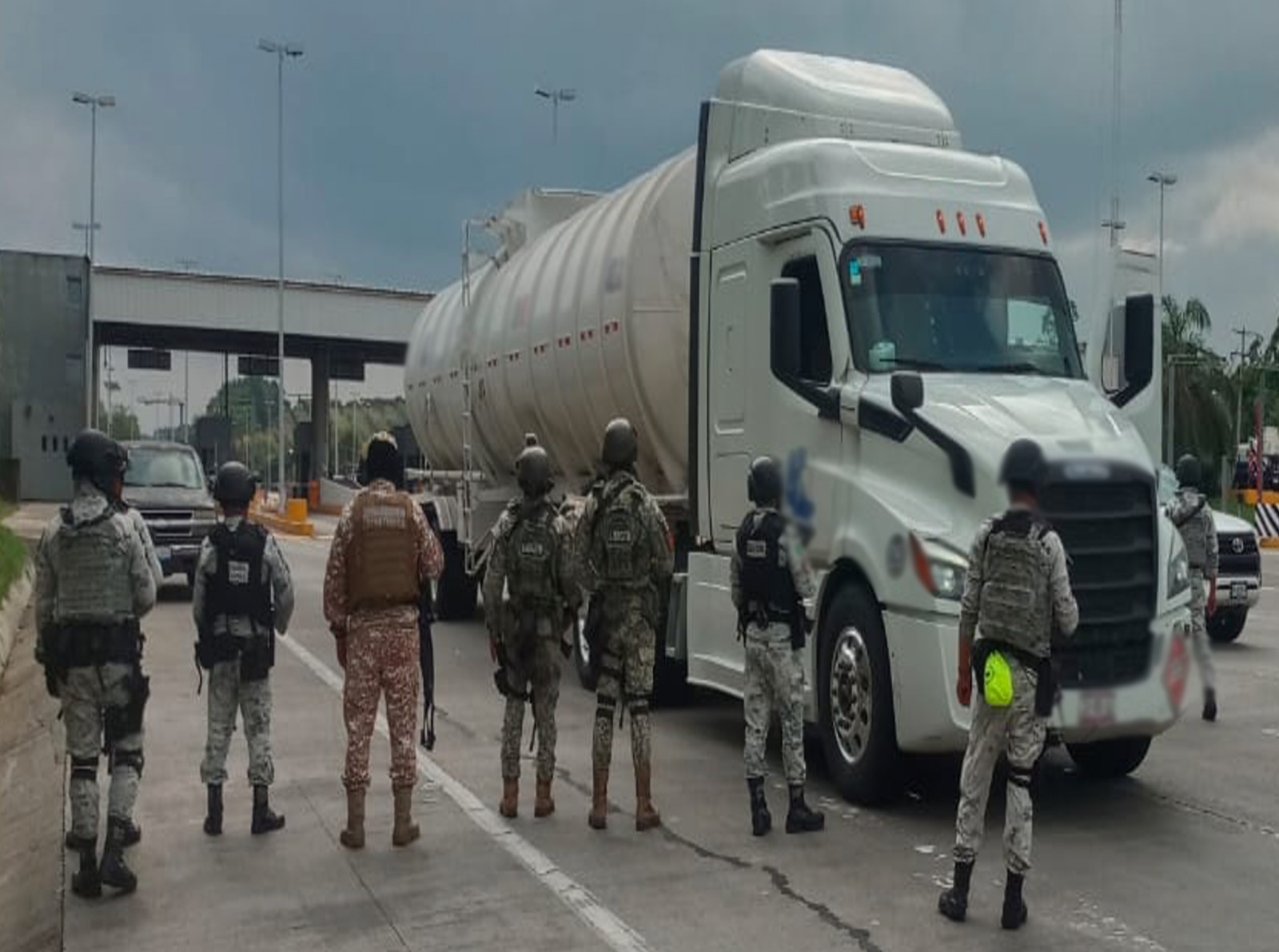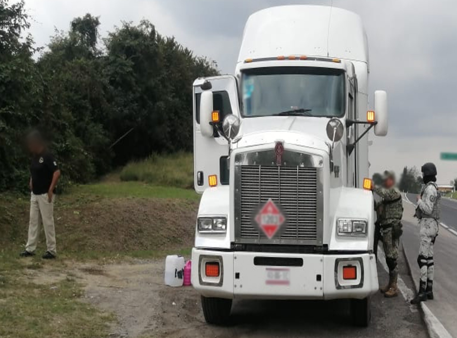En Veracruz, elementos del Ejército Mexicano, GN y Seguridad Física de PEMEX, al realizar reconocimientos sobre la autopista México-Tuxpan, realizaron la detención de tres personas, aseguraron un tractocamión, un tanque cisterna y recuperaron 46,500 litros de hidrocarburo, gasolina.