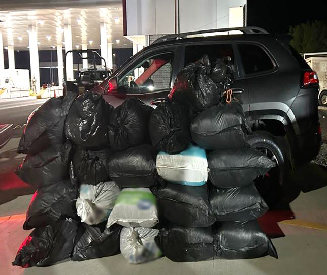 -En El Carmen, elementos de la SSPC, GN, Policía Estatal y Municipal de Escobedo y El Carmen detuvieron a un hombre a bordo de un vehículo, a quien le aseguraron 130 kilos de marihuana.