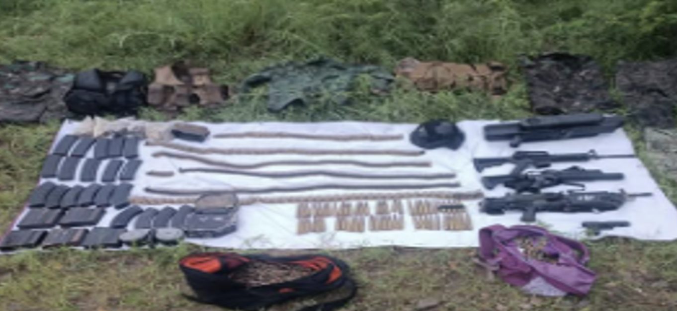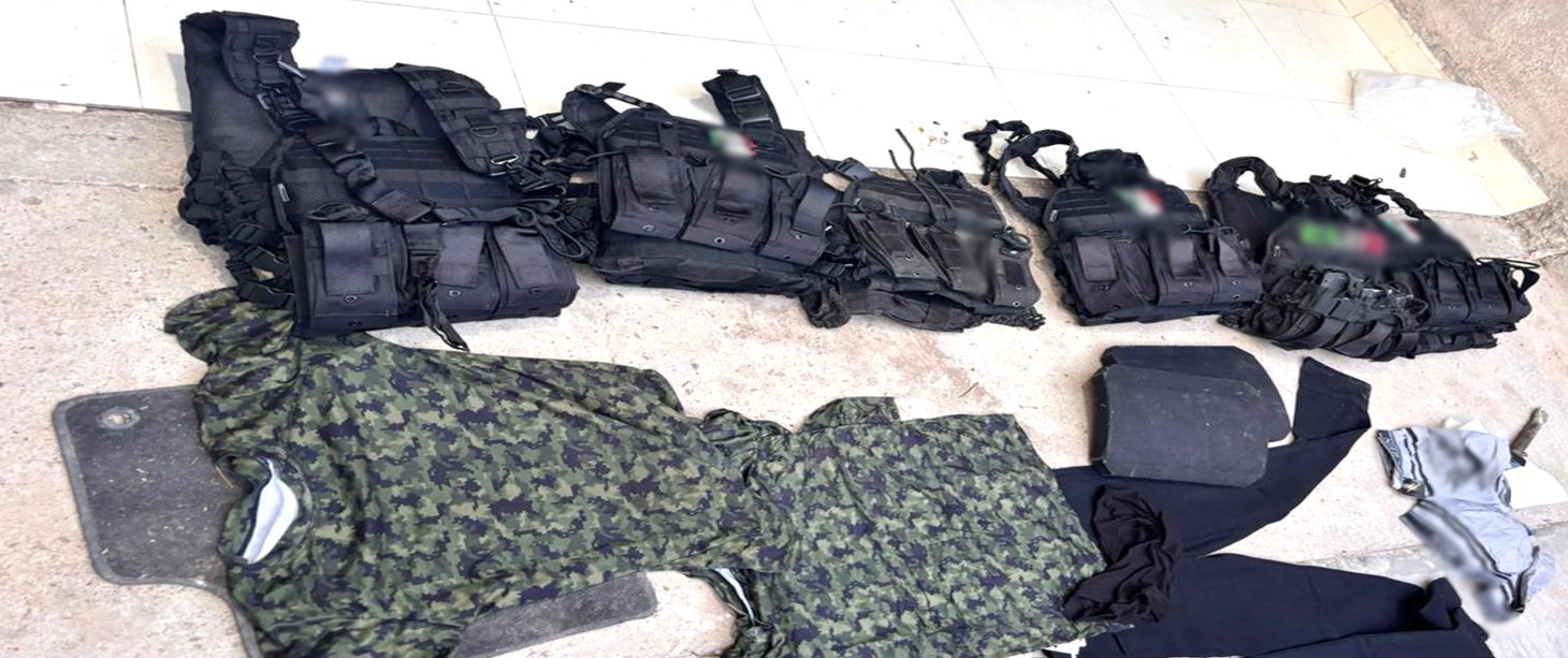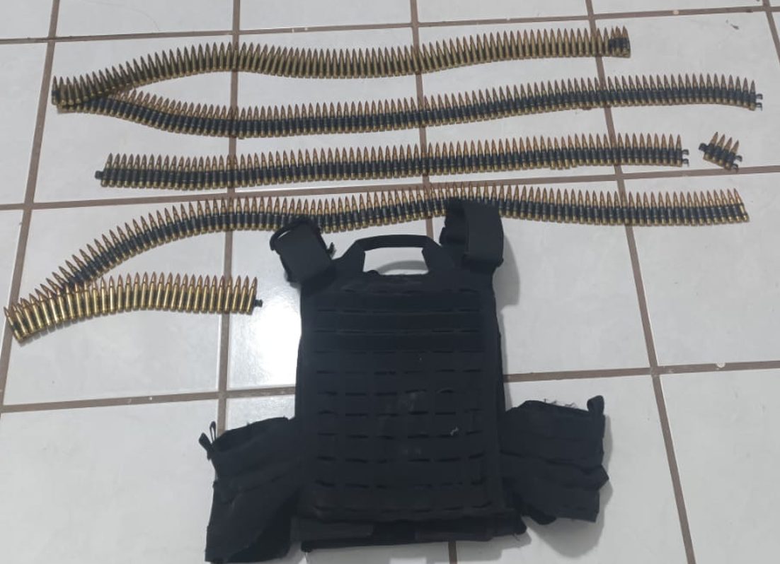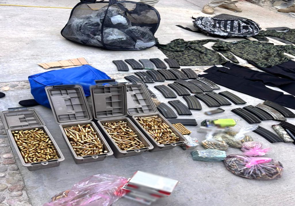 -En Nayar, elementos del Ejército Mexicano aseguraron 412 cartuchos, dos cintas metálicas para ametralladora y un chaleco balístico.