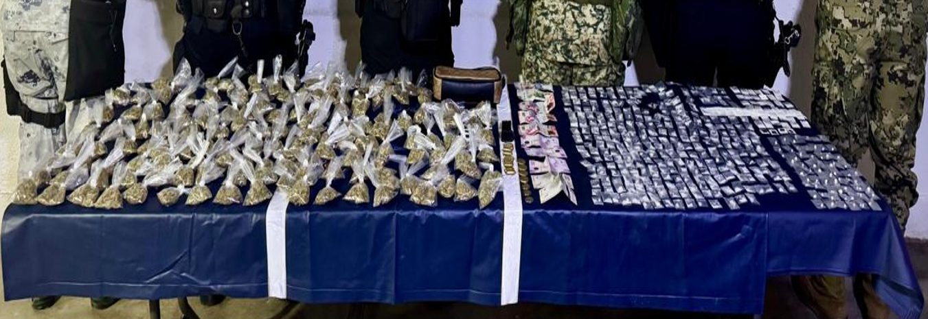 -En Acapulco, elementos de Semar, Ejército Mexicano, GN y Policía Estatal aseguraron 552 dosis de diferentes sustancias ilícitas, 12 cartuchos útiles, un cargador y dinero en efectivo.