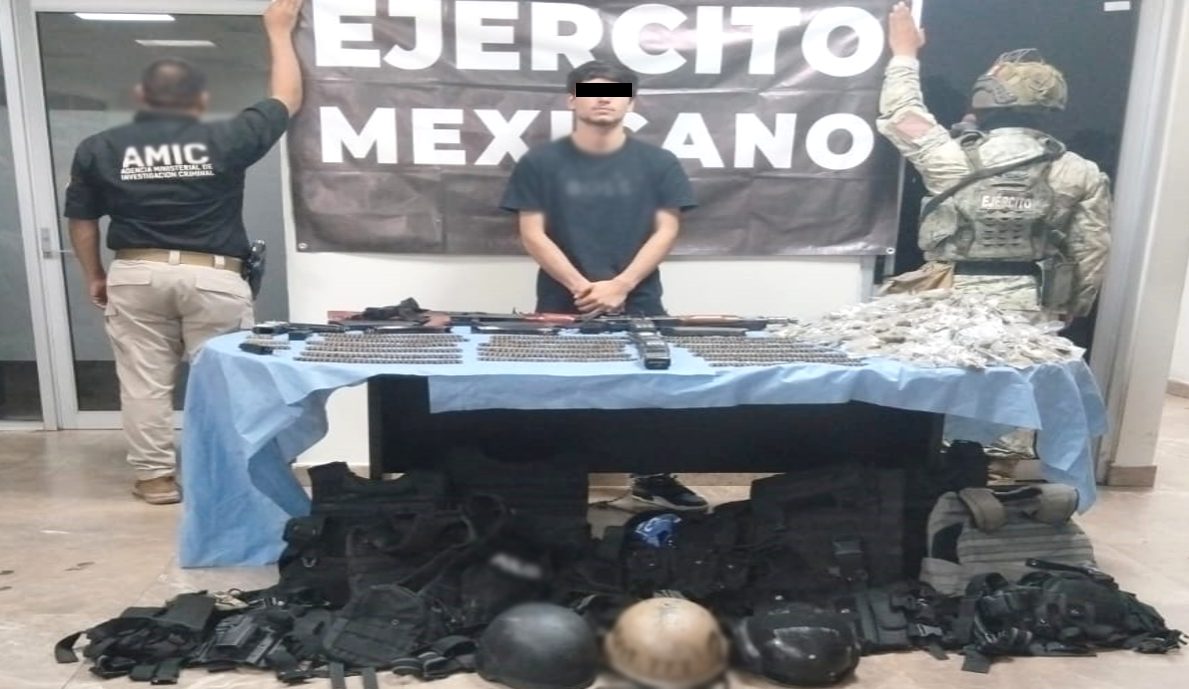-En Cajeme, elementos del Ejército Mexicano y Fiscalía Estatal catearon un inmueble, detuvieron a un hombre, le aseguraron dos armas largas, un arma corta, cargadores, 596 cartuchos, 1,050 dosis de marihuana, siete chalecos balísticos, tres cascos balísticos y cuatro vehículos, uno de ellos con reporte de robo.