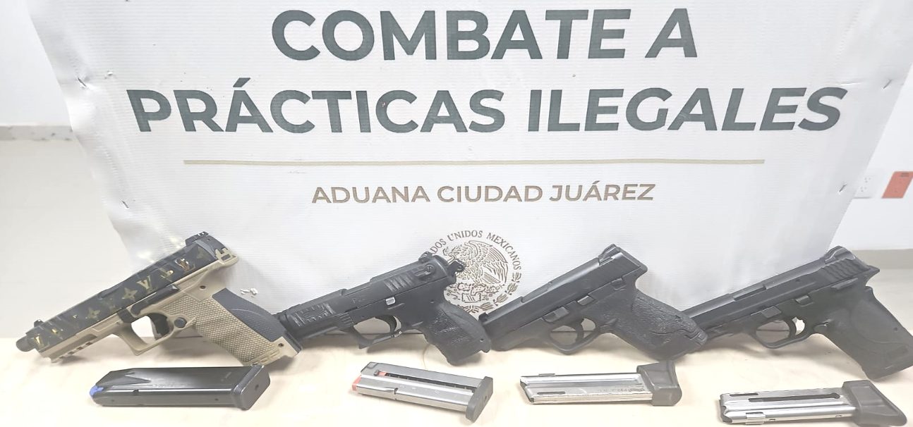 En Chihuahua, elementos de Aduanas, al realizar una inspección en el Puente Internacional Libre-Córdova, detuvieron a una persona de nacionalidad estadounidense, aseguraron cuatro armas largas, cuatro armas cortas, 11 cargadores, 404 cartuchos, un silenciador y un vehículo