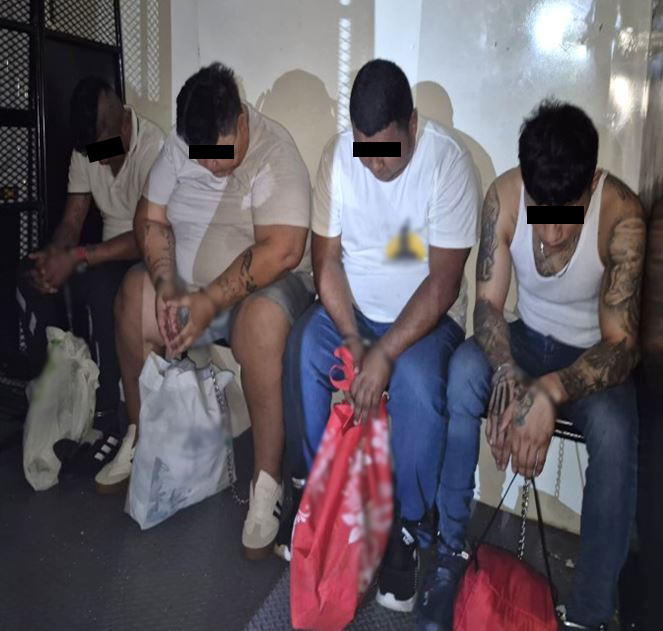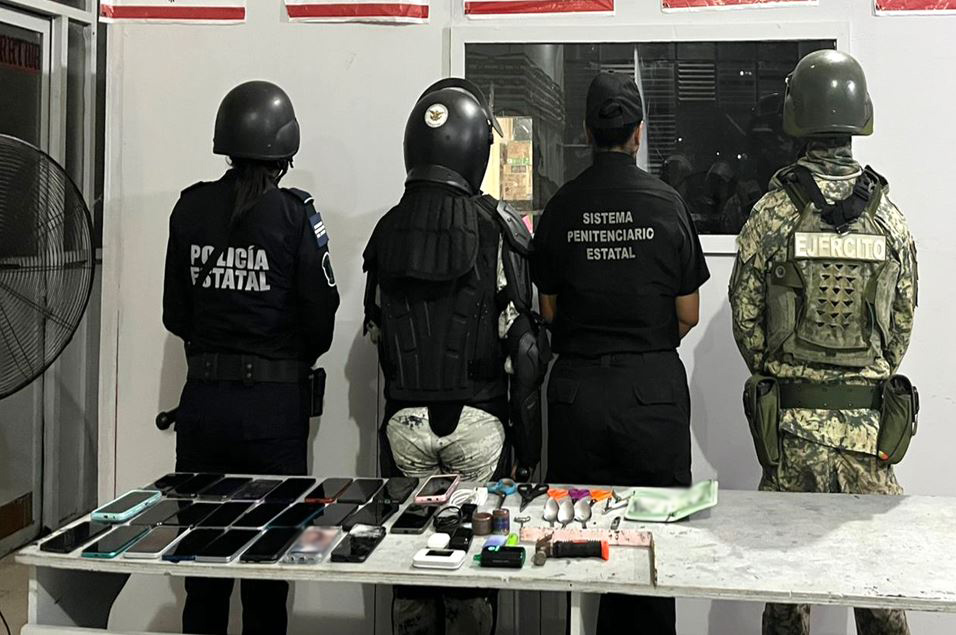 -En Centro, elementos de GN, Ejército Mexicano, Sistema Penitenciario del Estado, SSPC y Comisión Estatal de Derechos Humanos trasladaron a siete personas privadas de su libertad al Centro Penitenciario No. 9, Huimanguillo, aseguraron dos trituradoras para marihuana, tres veladoras, dos auriculares inalámbricos, un módem, un martillo, tres cucharas, un destapador de metal, seis tijeras y en el marco de la Estrategia Nacional Contra la Extorsión, aseguraron 26 teléfonos y dos cargadores para celulares.