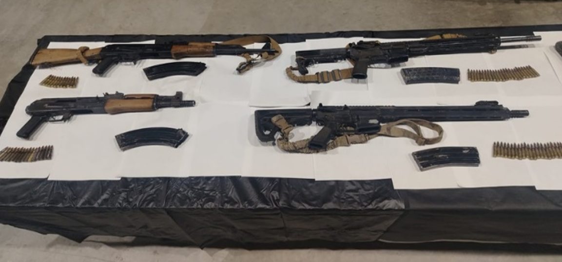 -En Tijuana, elementos de la Secretaría de Seguridad y Protección Ciudadana (SSPC), Ejército Mexicano, Secretaría de Marina (Semar), Guardia Nacional (GN), Fiscalía General de la República (FGR) y Policía Estatal catearon dos inmuebles y detuvieron a cinco personas, entre ellas a un generador de violencia, les aseguraron cuatro armas cortas, siete cargadores, 91 cartuchos, dosis de marihuana y de metanfetamina.