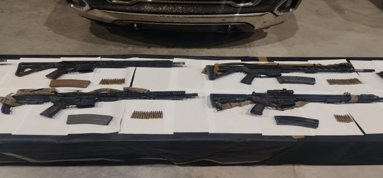 -En Galeana, con trabajos de inteligencia, elementos de GN, Ejército Mexicano y Policía Estatal localizaron tres vehículos, aseguraron nueve armas largas, 24 cargadores, 443 cartuchos, 22 chalecos tácticos y ocho cascos balísticos.