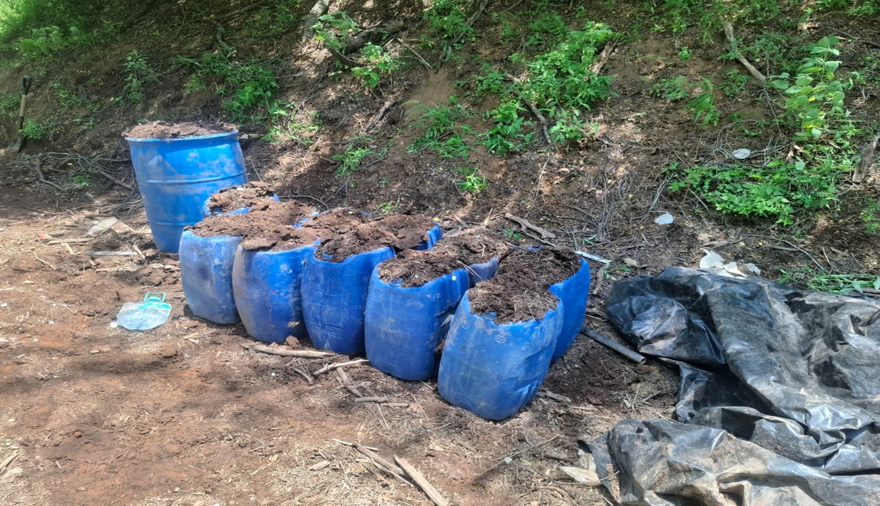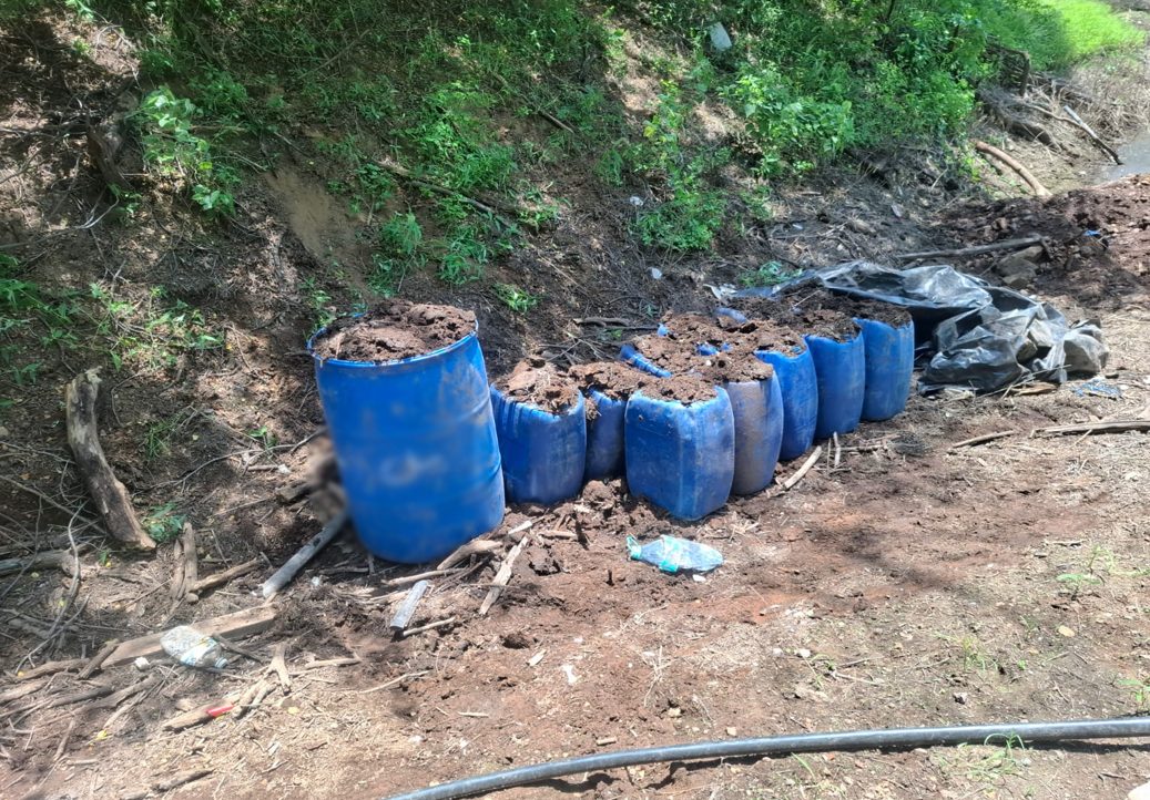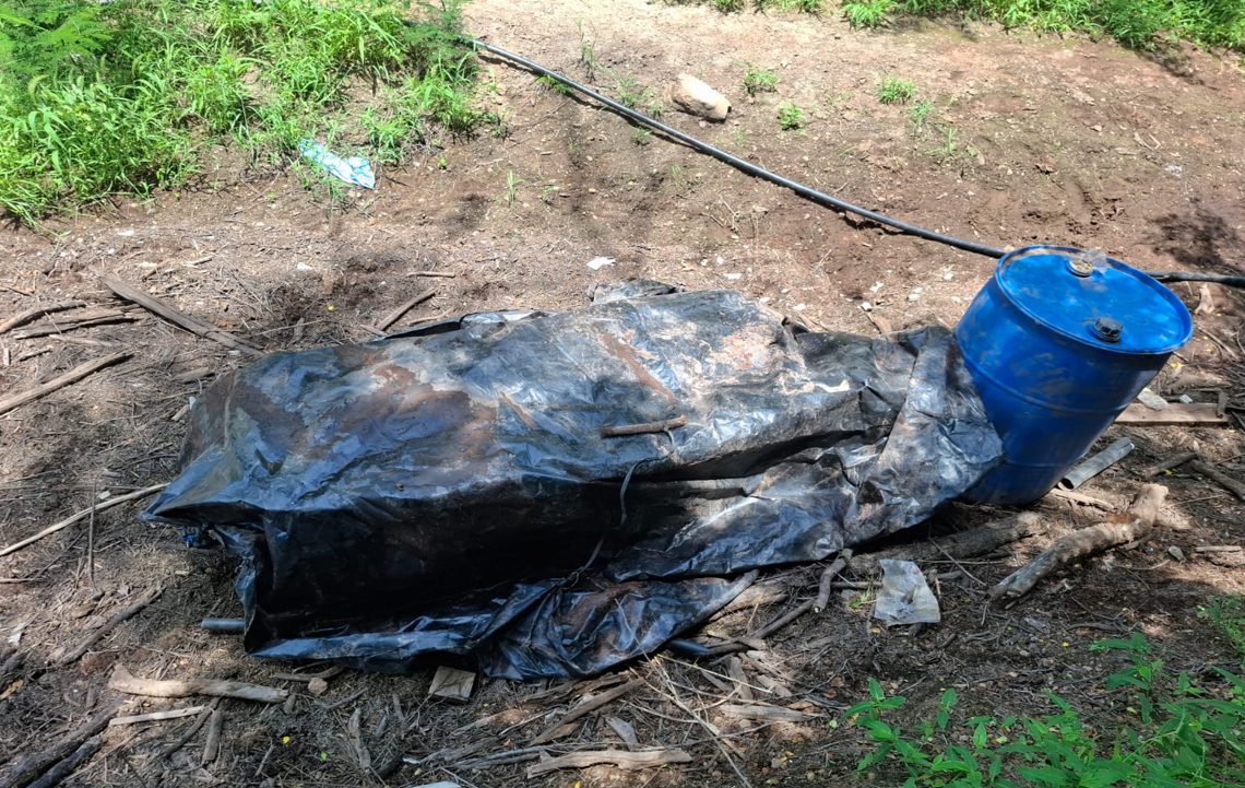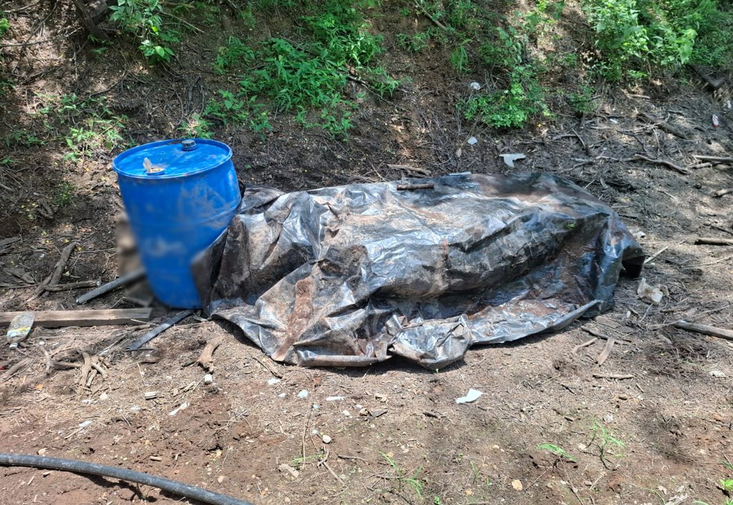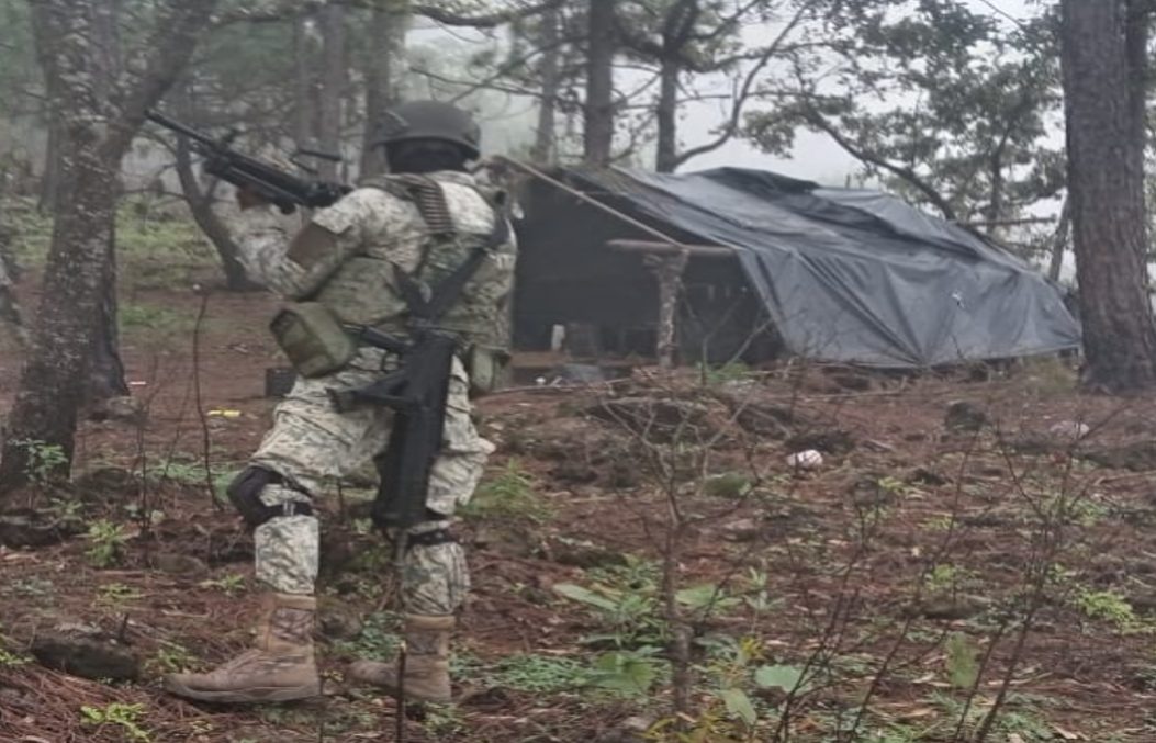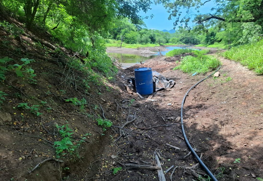 También en la localidad Vinoramas, elementos del Ejército Mexicano localizaron un área de concentración de material diverso donde aseguraron 750 litros de sustancias químicas.