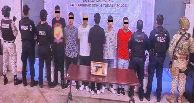-En Tijuana, Ensenada y Mexicali, elementos de la Guardia Nacional (GN), Ejército Mexicano, Fiscalía General de la República (FGR), SSPC, Fiscalía Estatal y Policía Estatal y Municipal detuvieron a ocho personas, entre ellos un menor de edad, les aseguraron un arma corta, 2,000 cartuchos, 300 dosis de metanfetamina y un vehículo.