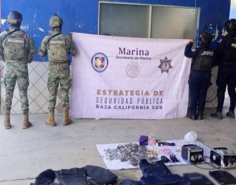 -En Cabo San Lucas, en la colonia Cangrejos, elementos de la Secretaría de Marina (Semar) y Policía Municipal detuvieron a ocho personas con 95 dosis de cocaína, 33 bolsas con marihuana, 52 dosis de marihuana, 445 dosis de metanfetamina, un arma corta, 30 cartuchos útiles, dos chalecos tácticos, 19 cigarros electrónicos, seis máquinas tragamonedas y dos máquinas contadoras de billetes.