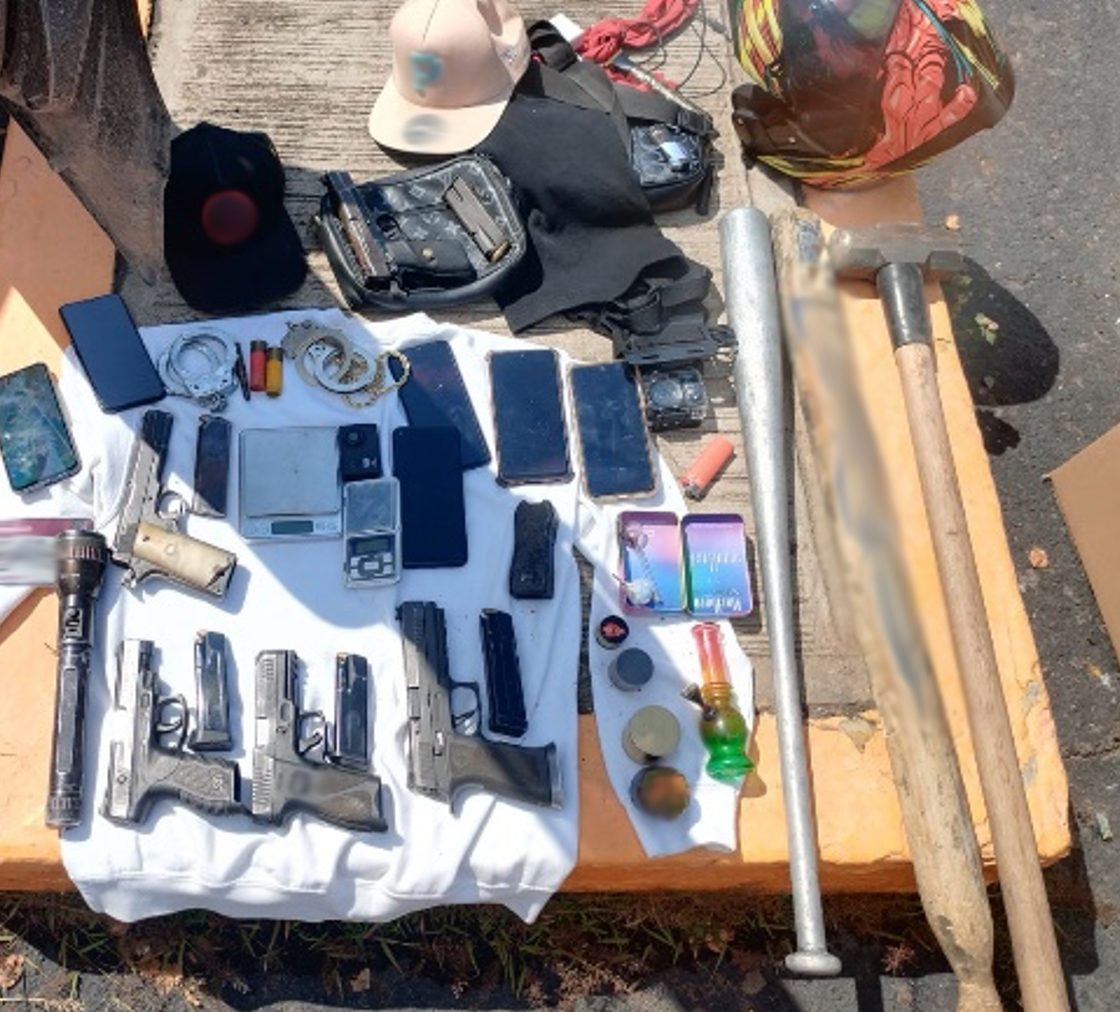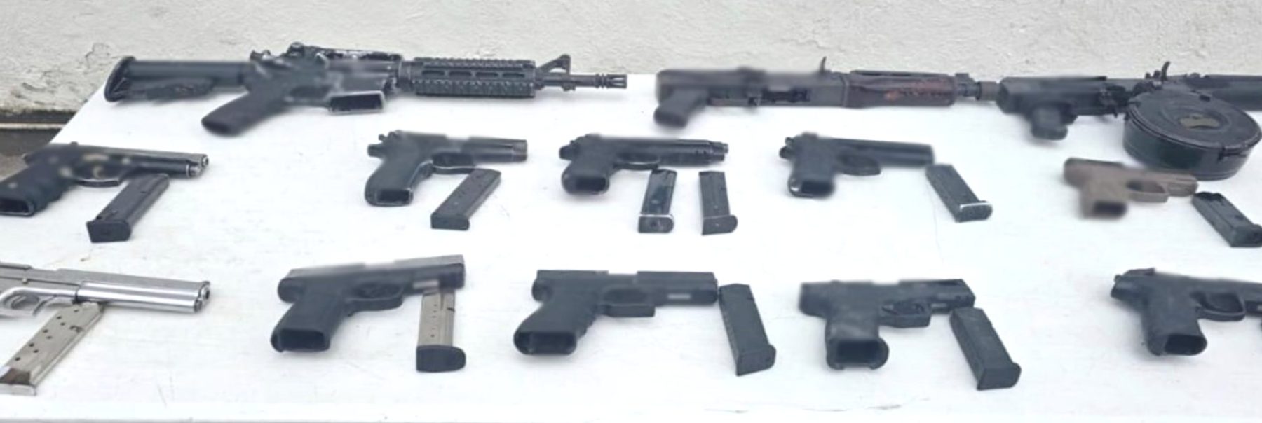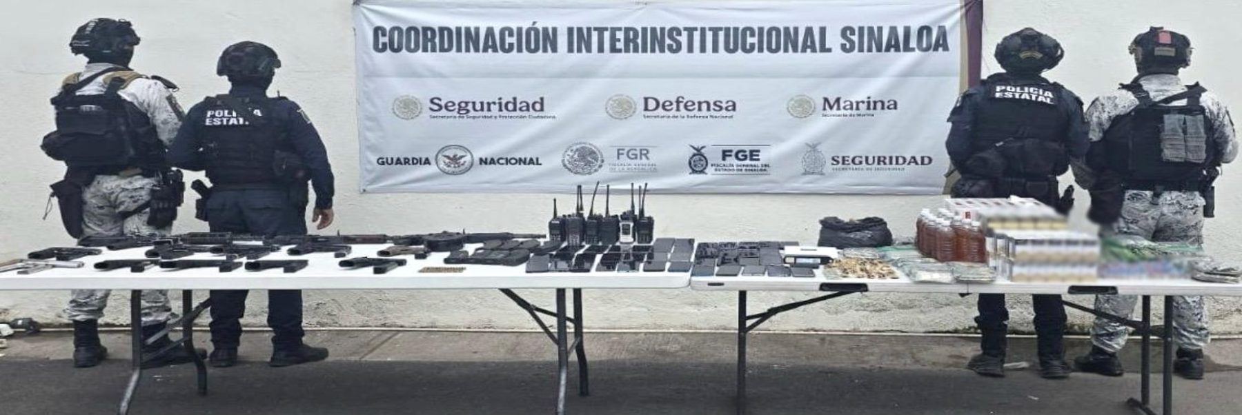 En Sinaloa, elementos del Ejército Mexicano, GN, Semar, FGR, Fiscalía del Estado y Policía Estatal inspeccionaron los módulos 8 y 21 del Centro Penitenciario Aguaruto, aseguraron 10 armas cortas, tres armas largas, 19 cargadores, 264 cartuchos, diversas dosis de droga, 800 cigarros de marihuana, 600 cajetillas de cigarrillos, 12 equipos de radiocomunicación, 40 celulares y una banda ancha