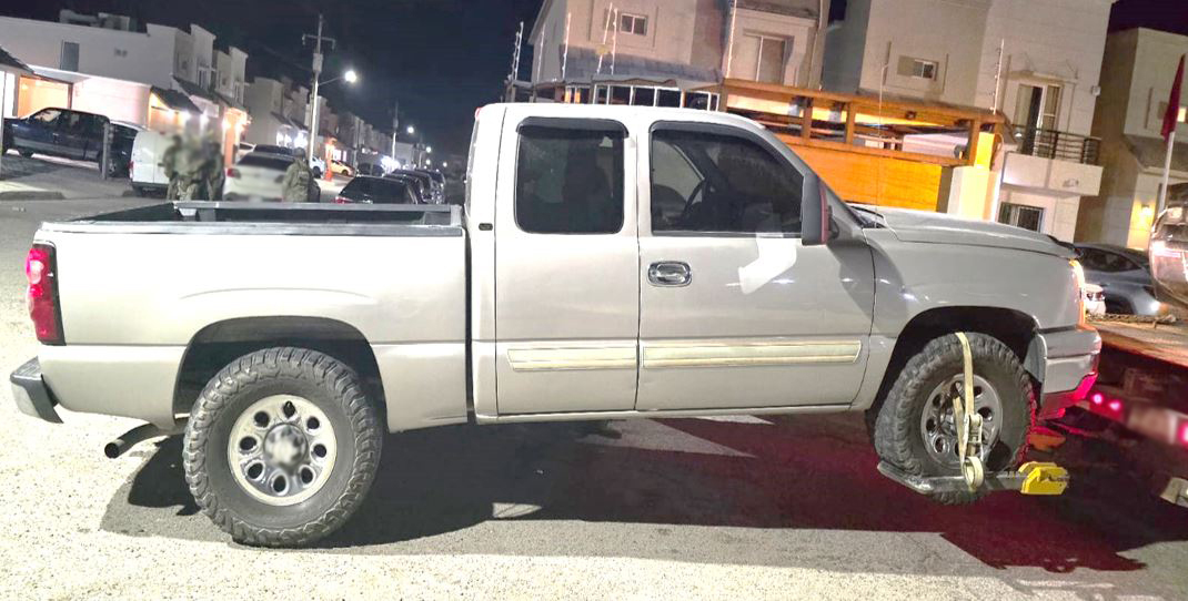 -En Mexicali, elementos del Ejército Mexicano y de la Fiscalía del Estado catearon un inmueble, detuvieron a dos personas, le aseguraron un arma larga, dos armas cortas, 10 cargadores, 166 cartuchos, tres granadas de gas, un cerrojo para arma larga, una mira telescópica y tres vehículos.